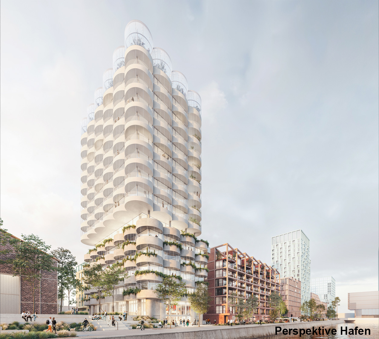 Der zweistufige städtebaulich-hochbauliche Realisierungswettbewerb hat in der Jurysitzung am 19.09.2025 einen Sieger gekürt. Die Jury würdigt den Entwurf von &MICA Architekten als konsequent und stimmig für die besondere Lage am Hafen. Das Hochhaus nimmt die Typologie hafentypischer Silos auf und überzeugt durch eine klare Maßstäblichkeit sowie durchdachte Grundrisse, die eine flexible Nutzung ermöglichen.